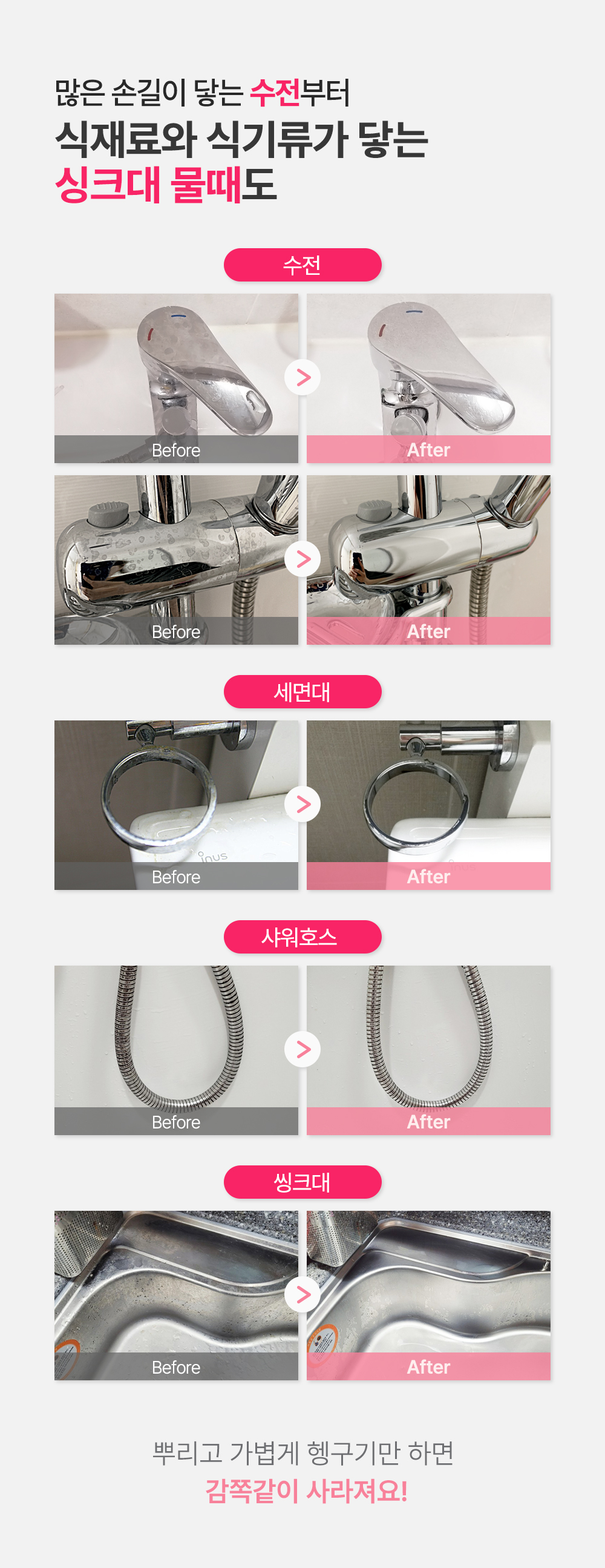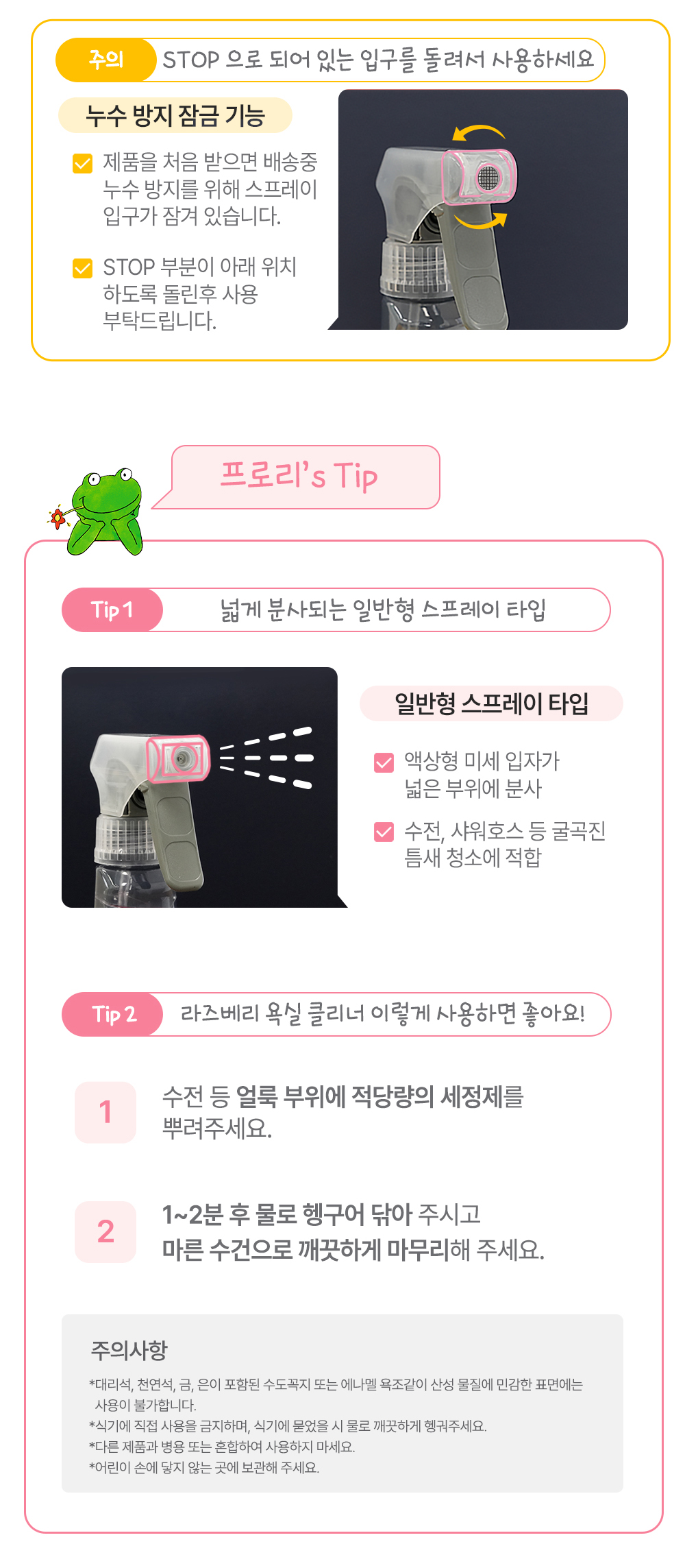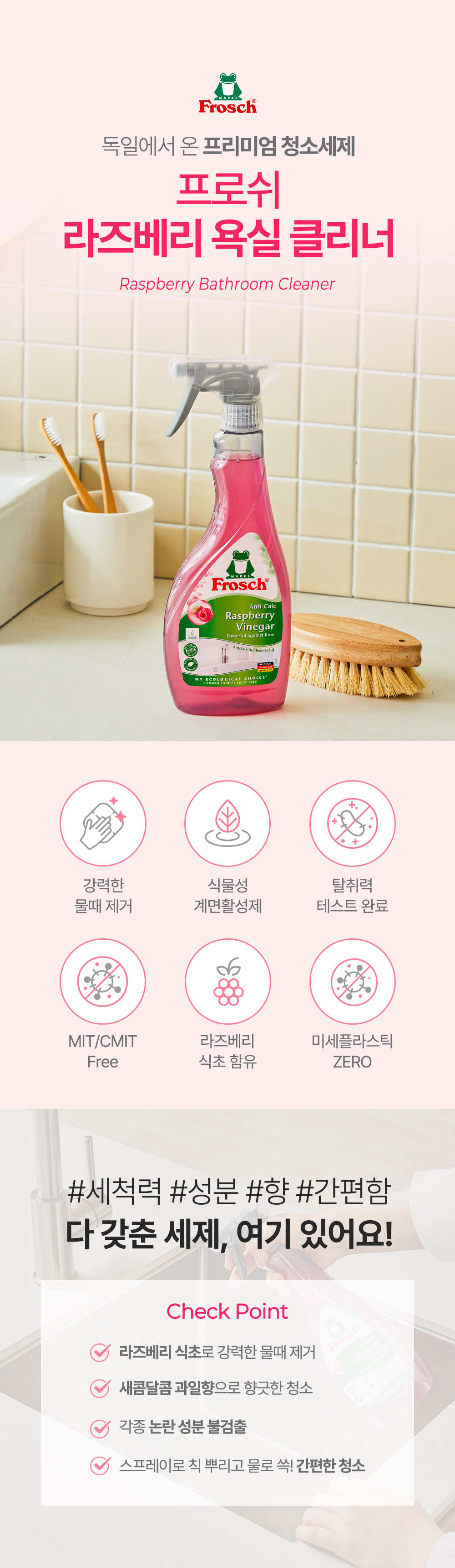 - 라즈베리 욕실 클리너 : 수전 등 주로 스테인리스 재질 청소