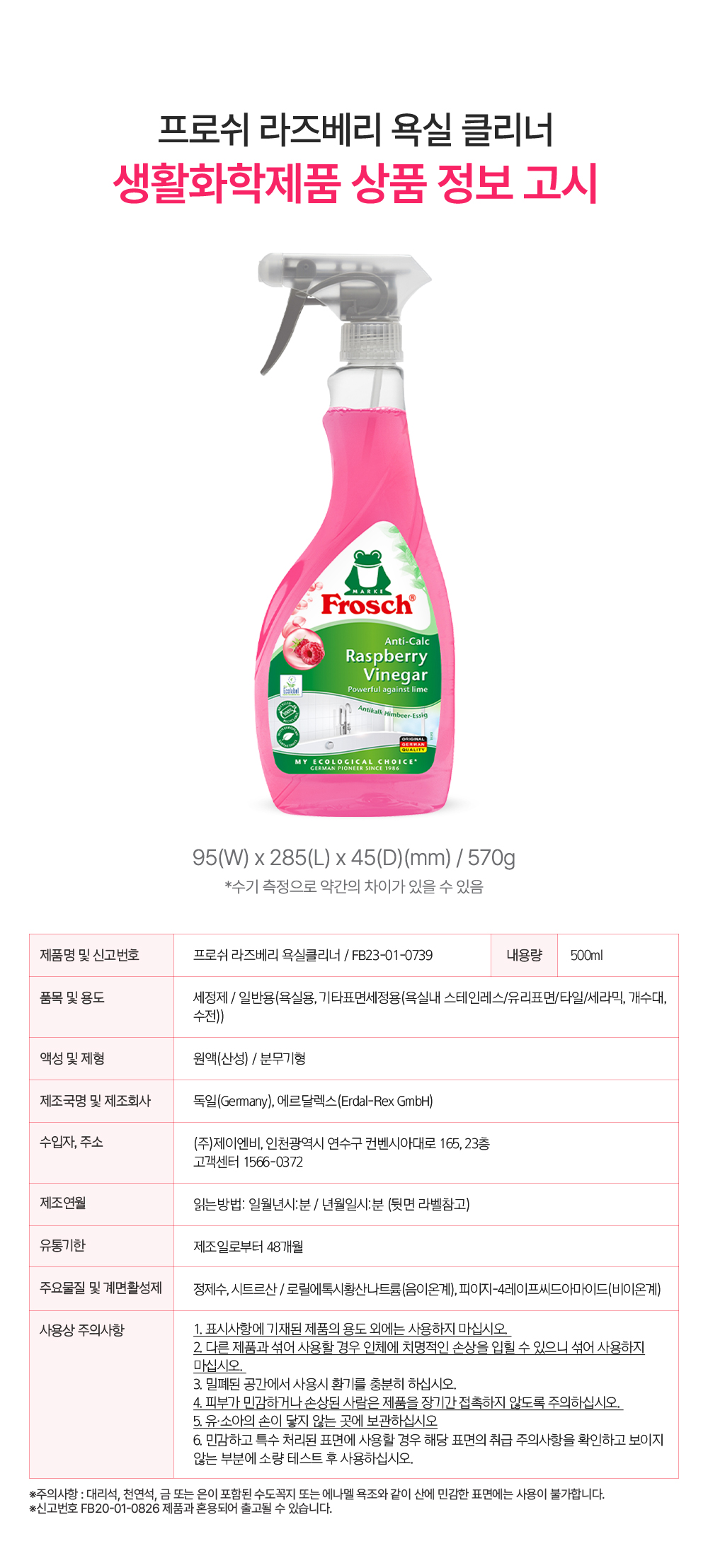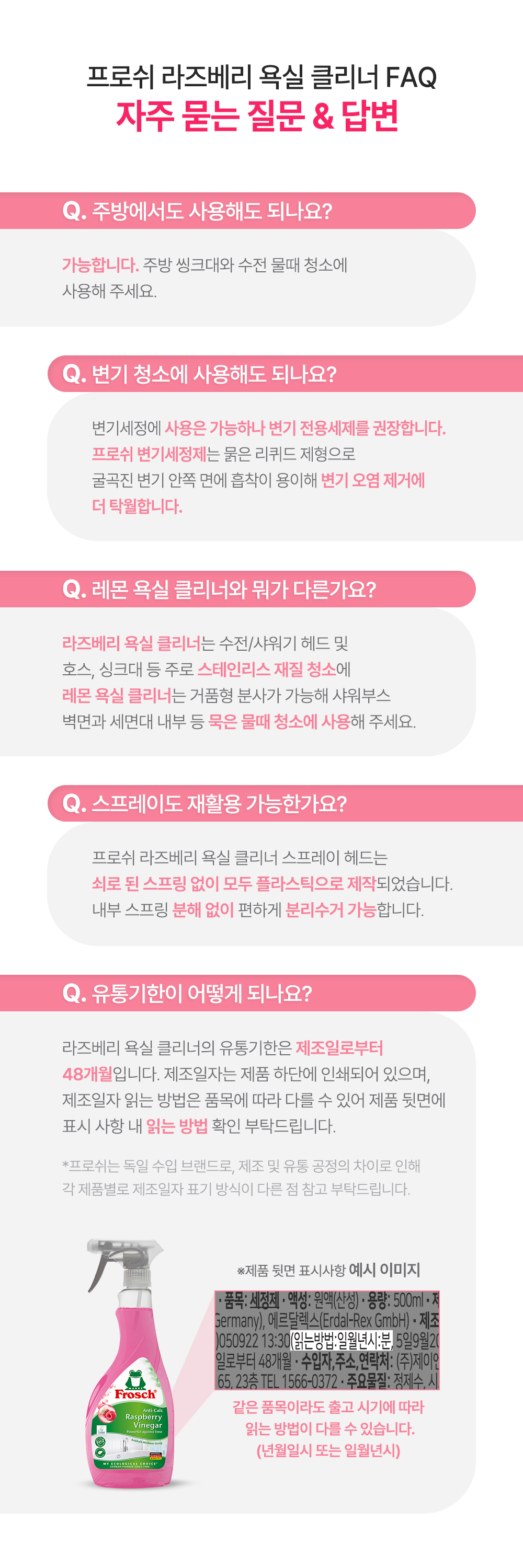 프로쉬 독일 다목적 라즈베리 욕실클리너 500ml 물때제거