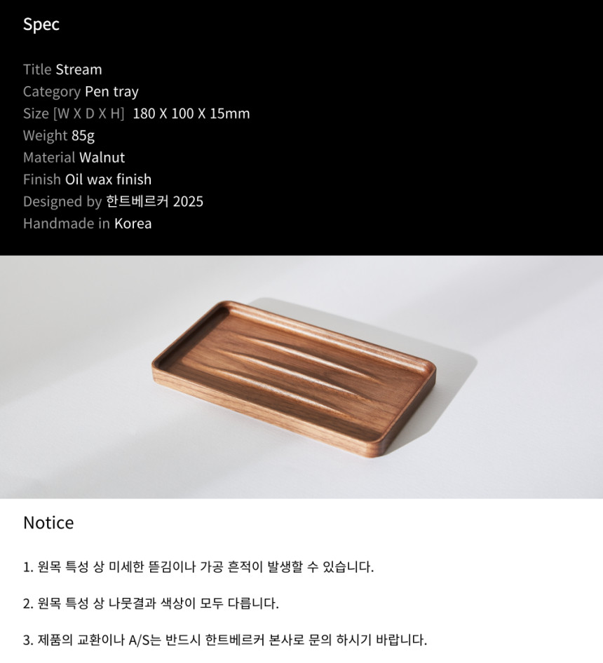 스트림(Stream) 펜 트레이는 흐르는 듯한 곡선 디자인으로 펜을 자연스럽게 구분하여 거치할 수 있도록 설계된 제품입니다. 원목의 질감과 매끄러운 라인이 조화를 이루며, 필기구를 안정적으로