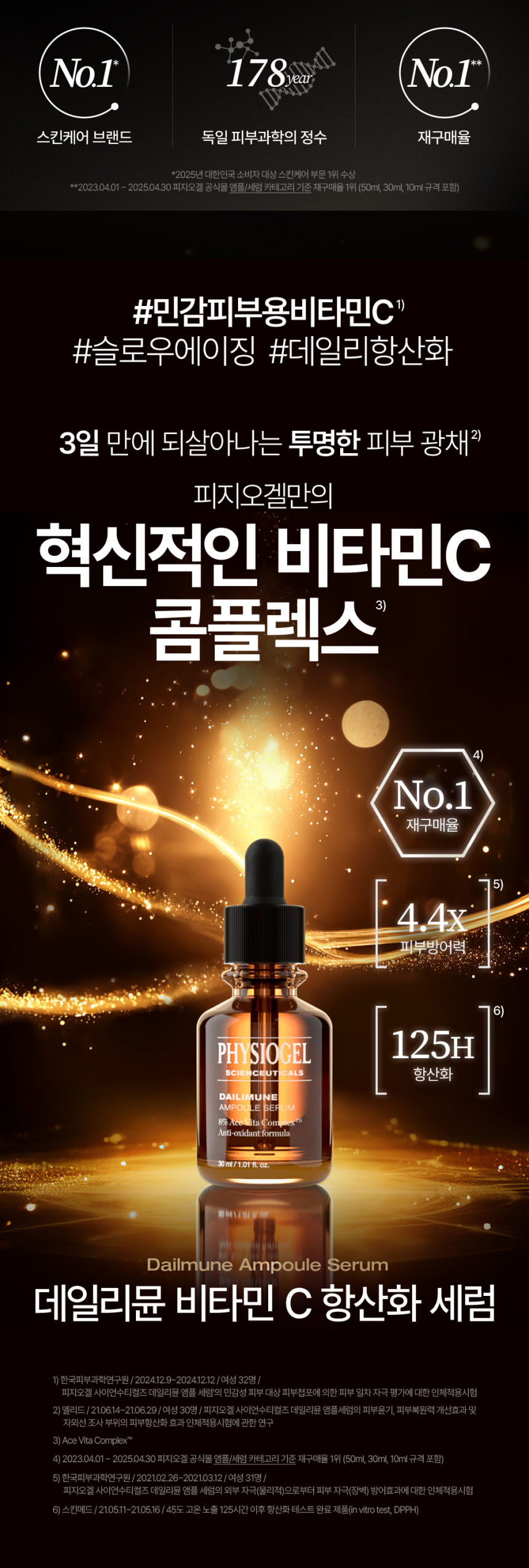 피지오겔 사이언수티컬즈 데일리뮨 비타민C 항산화 앰플 30ml 미백 세럼+(증정)베리어크림5ml+글로