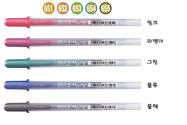 데코레이션 하기 좋은 펜으로서 선의 안쪽이 메탈릭실버,가장 자리가 각각의 본래색으로 발색 됩니다