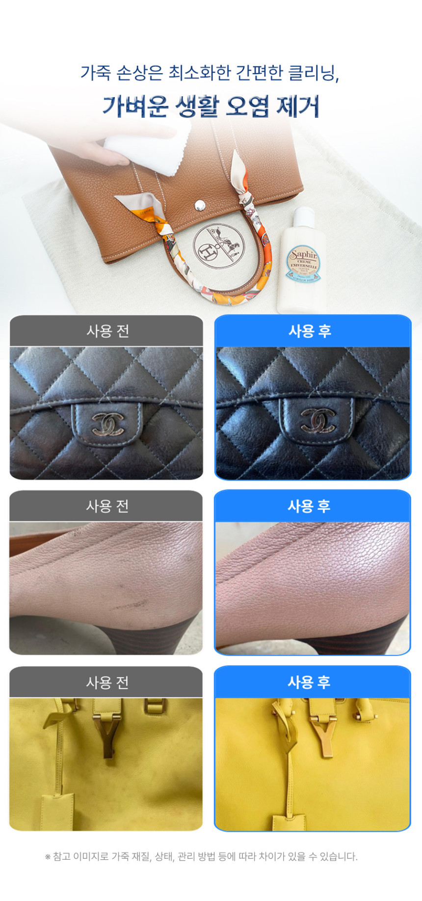 사피르 유니버셜 레더 로션 크림 150ml 가죽 명품가방 쇼파 영양 광택 얼룩제거 클리너 : 사피르코