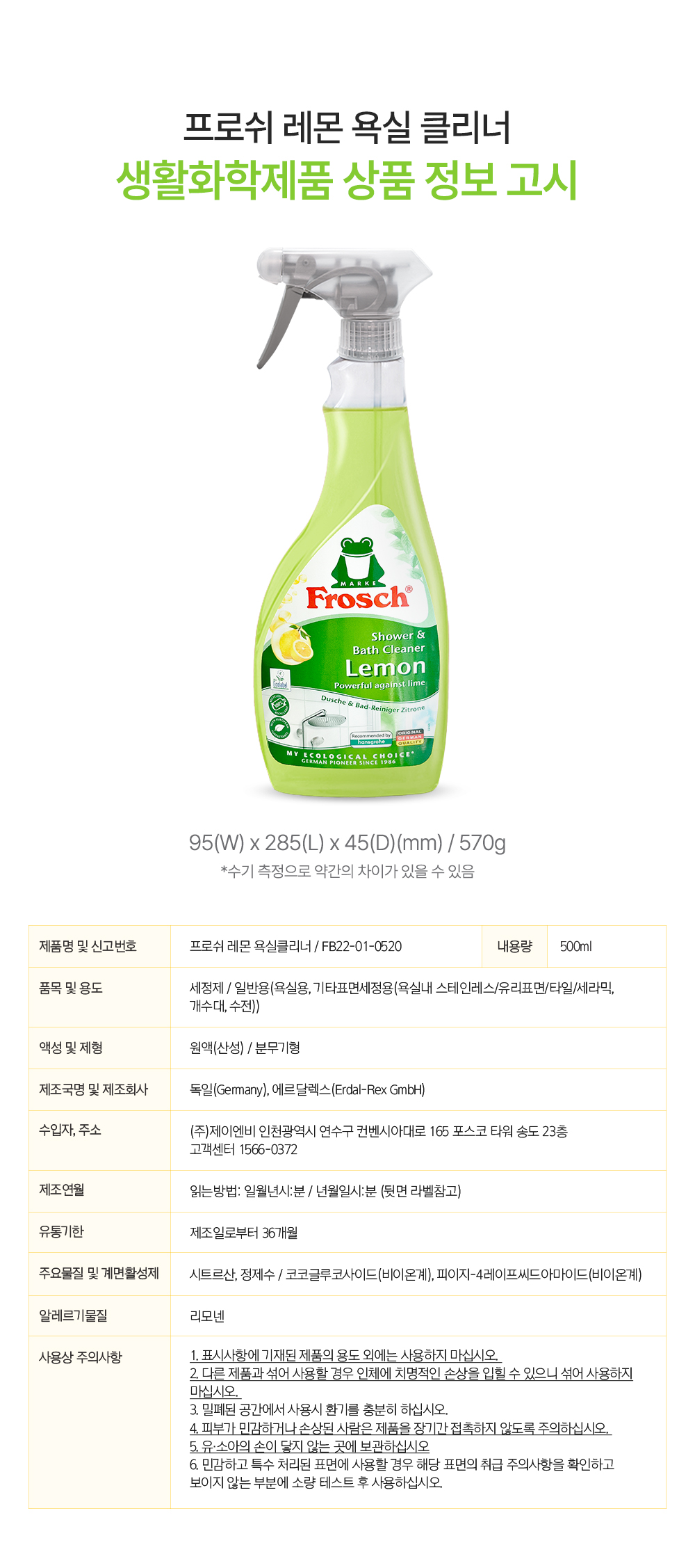프로쉬 독일 다목적 레몬 욕실클리너 500ml 물때제거